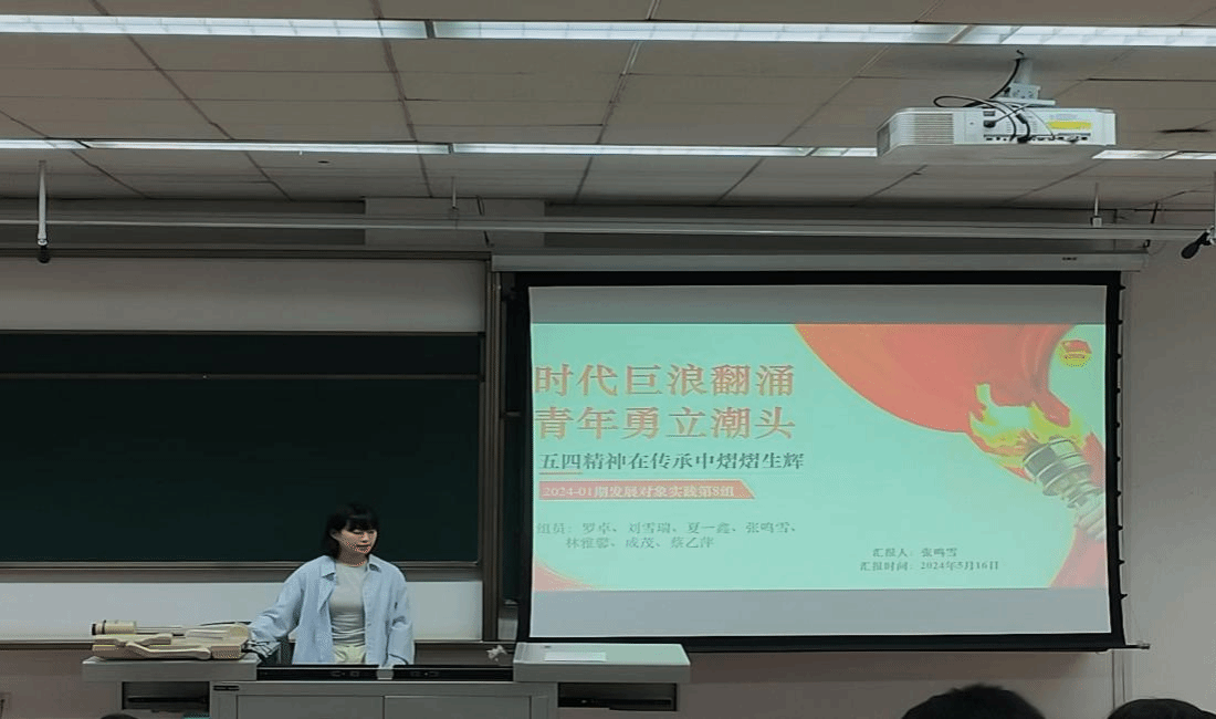 2024年5月16日19:00,太阳成tyc7111cc组织2024- 01期发展对象在J4106教室开展了第一次社会实践活动。本次实践活动主要是以五四运动为主题的汇报活动。