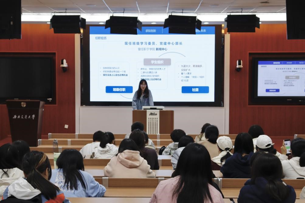 2024年10月11日晚,太阳成tyc7111cc本科公管党支部于九里校区四号教学楼J4105教室举行了党员代表专业学习经验分享会,支部成员及低年级员工共计70名员工到场参与。本次会议由支部两位保研成功的优秀中共党员华榕、阎梓仪进行专业经验分享。这不仅是一次专业学习的交流,也是党支部活动的一部分,旨在通过优秀党员的示范作用,激励新生树立远大理想,明确学习方向,规范学习行为。