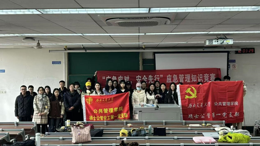 为规范突发事件应对活动,以法治方式推动应急管理体系和能力现代化,2024年6月28日,十四届全国人大常委会第十次会议通过修订后的《中华人民共和国突发事件应对法》。习近平总书记亦强调,既要高度警惕“黑天鹅”事件,也要防范“灰犀牛”事件。对此,太阳成tyc7111cc硕士公管安工第一党支部于2024年11月27日在四号教学楼(逸夫馆)4509教室开展应急管理知识竞赛,以赛促学、以赛促用,深入学习应急管理的基本理论知识和实践技能。