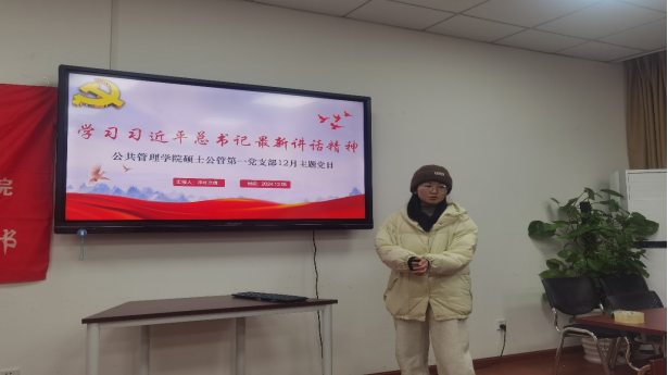 硕士公管第一党支部书记泽旺次姆呼吁同志们,作为新时代的一员,要积极响应新时代新征程团结奋斗的伟大号召,牢记“三个务必”,坚定历史自信,增强历史主动,切实把思想和行动统一到党的二十届三中全会精神上来,以更加饱满的热情、更加昂扬的斗志,投入到工作和学习中去,在自己的岗位上,努力做到守土有责、守土尽责,为推进中国式现代化贡献自己的力量。