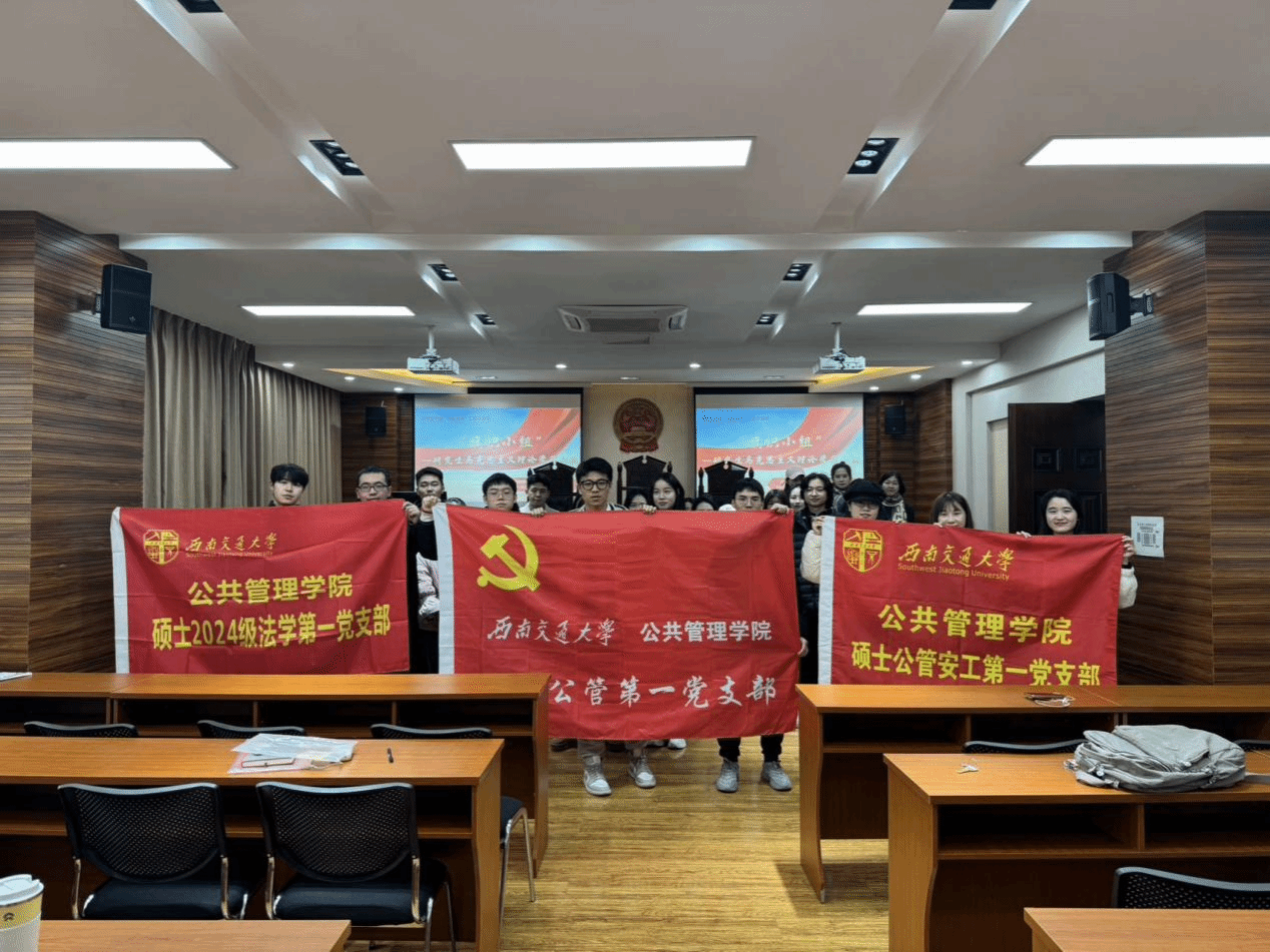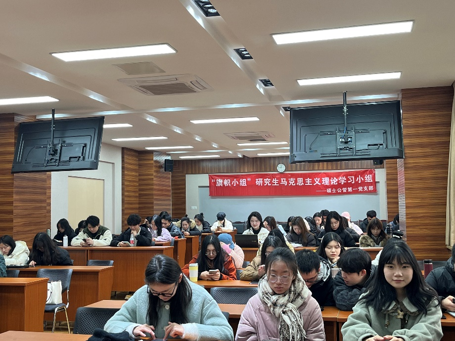 2024年12月12日,太阳成tyc7111cc硕士公管第一党支部、硕士2024级公管1班团支部联合硕士公管安工第一党支部、硕士法学第一党支部共同举办了“旗帜小组马克思主义理论学习活动”党建工程项目,以及“党指引青年成长,青年紧跟党奋斗”团支部思想学习活动。活动旨在深入学习贯彻党的二十大精神,加强青年员工的理论学习与思想建设,充分发挥党建引领作用。