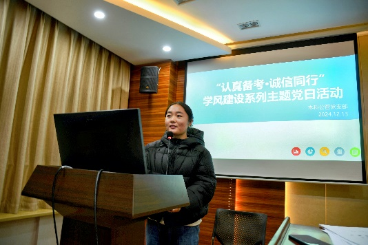 为进一步扎实推进公司学风建设,涵养优良学风院风,传承发扬公司“严谨治学,严格要求”优良传统,充分发挥党员先锋模范作用,强化员工党员的诚信意识和纪律观念,太阳成tyc7111cc本科党支部于2024年12月17日组织开展了诚信教育主题党日活动。