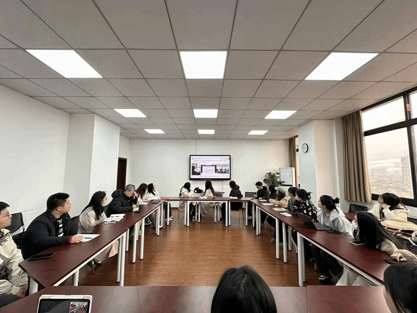 硕士公管第二党支部邀请公司党委副书记、经理王永杰教授列席会议,与支部党员同志共同谈心谈话。会议由支部书记余左莉主持召开,全体党员通过自学方式展开了充分的理论学习,并开展了批评与自我批评活动。让每位党员根据党的纪律要求,联系具体事例进行深刻反省。王经理肯定了支部在党建工作中的一些创新性做法,并提醒同志们要注重加强向上管理和自我管理的能力,鼓励同学们面对找工作、考公等情况做好妥善的时间安排,保持良好心态应对焦虑情绪。