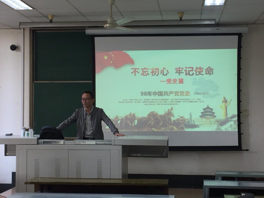 今年是中华人民共和国成立70周年,全党上下开展“不忘初心,牢记使命”主题教育,为充分认识开展主题教育的重大意义,准确把握主题教育的目标要求,提高主题教育的学习效果,2019年10月17日,在九里校区J4519教室,硕士2018级公管第一党支部邀请到公共管理与政法公司副经理雷斌同志为支部成员讲授“不忘初心,牢记使命”主题党课。