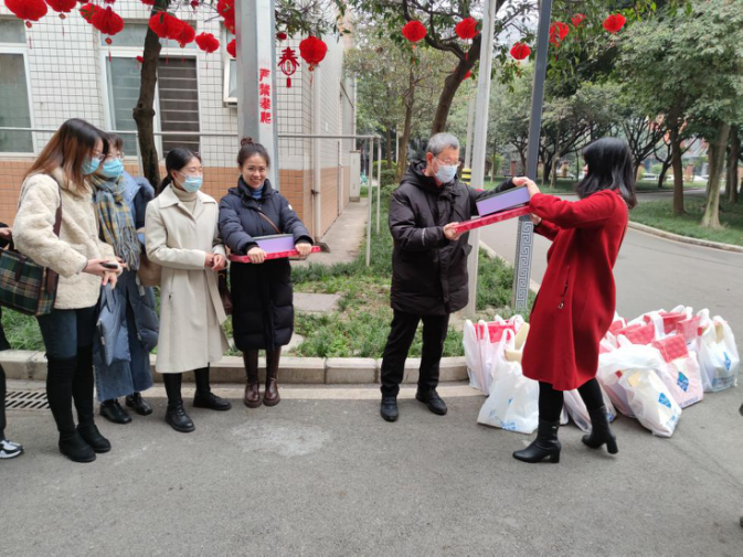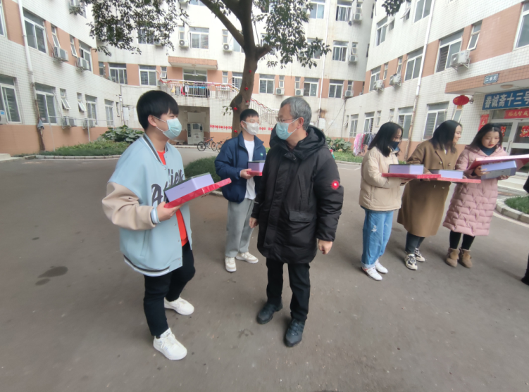 公司经理王永杰、党委副书记余小英为全体留校员工一一发放了慰问礼包,代表公司党委和公司教职工祝福留校同学们新年快乐,叮嘱同学们留校期间和返乡途中务必注意人身财产安全,对因疫情不能回家过年的同学们也表示关心关怀,希望留校过年的同学们能在校过个好年。