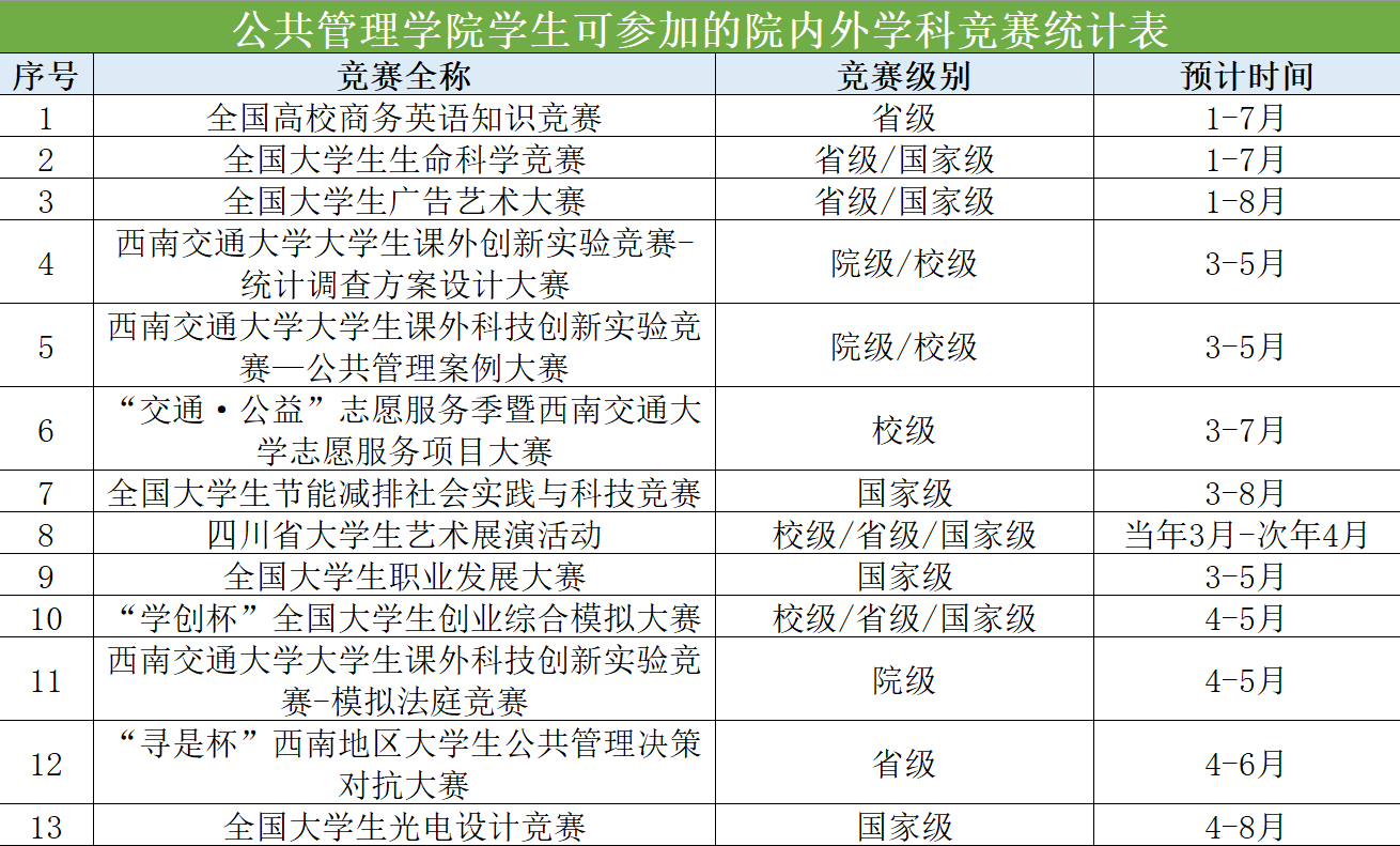 太阳成tyc7111cc员工可参加的院内外竞赛清单