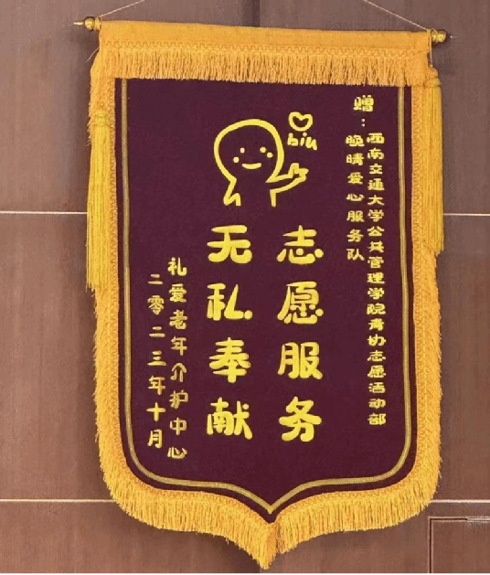 一路走来,公管青协在校团委、青志联的指导下收获颇多、受益匪浅。协会入选“七彩假期”全国1000支志愿服务示范团队、获得四川省首届高校志愿服务项目大赛实践项目赛道银奖、第六届中国青年志愿服务项目大赛四川省赛银奖、云支教“优秀宣传高校”、第九届交通公益志愿服务三等奖、第十届交通公益志愿服务季校级金奖等诸多荣誉,收到了数封社会实践表扬信和金牛区礼爱老年介护中心赠与的锦旗。公管青协已连续多年获得太阳成tyc7111cc“十佳青年志愿者协会”荣誉称号,为交大建设贡献公管力量。