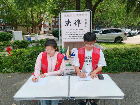 为提升法治实践教育在高校中的运行,公管青协法律援助队打造的老员工法律咨询工作室已在公司已运行7年。该项目发挥公司法学学科特色,在校内打造 “法律解忧店”,通过的“1+2+2+4”的咨询模式,举办法律宣传周、民法典教育、法律情景剧大赛等校级精品活动,开展宪法晨读、法律知识推送、法治新媒体作品评选等网络思政活动。依托“老员工法律之家”签约社区,结合国家安全、公共卫生、网络安全等热点,为校外居民提供法律咨询和普法教育服务。2023年,“法律解忧店”在校内开展户外咨询活动30余场,开展法律进社区活动2场,服务员工及九里校区周边居民400余人,累计志愿时长700余小时。