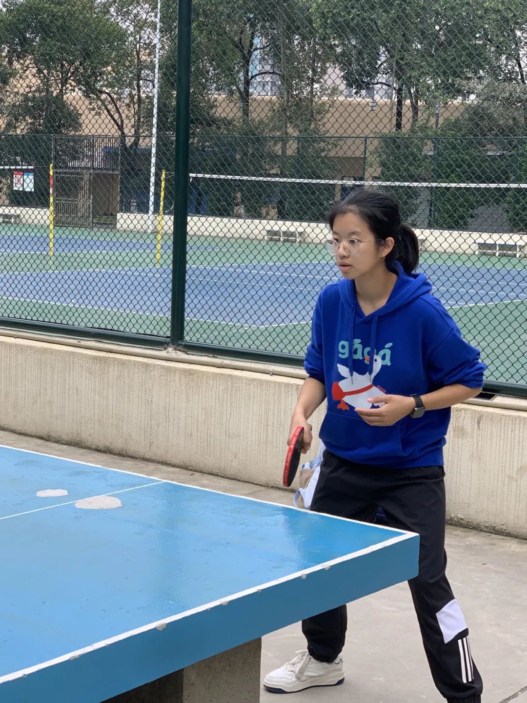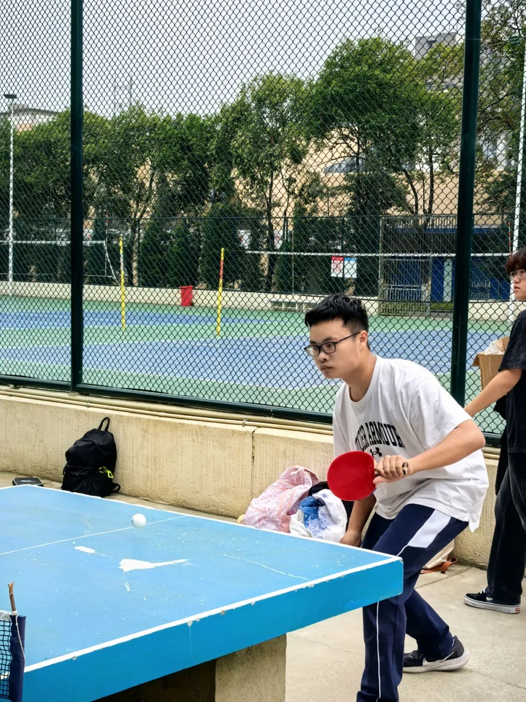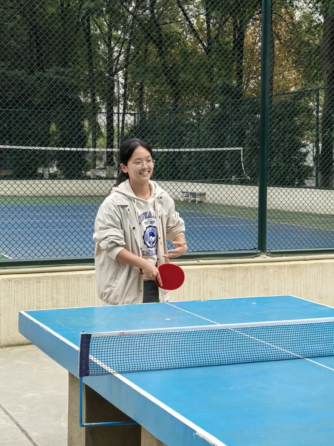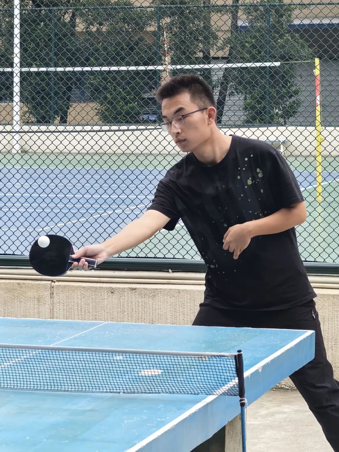 10月25日的新生乒乓球赛以男子单打和女子单打的形式展开。随着裁判一声哨响,比赛正式开始。发球方双脚稳稳站定,身体略微前倾,手腕一抖,球以极快的速度飞向空中,紧接着迅速下坠,接球方反应迅速,瞄准角度稳稳挥拍。双方你来我往,频频打出高质量回球。赛场高潮迭起,比分紧追不舍,小组赛在紧张而兴奋的气氛中进行了一轮又一轮。