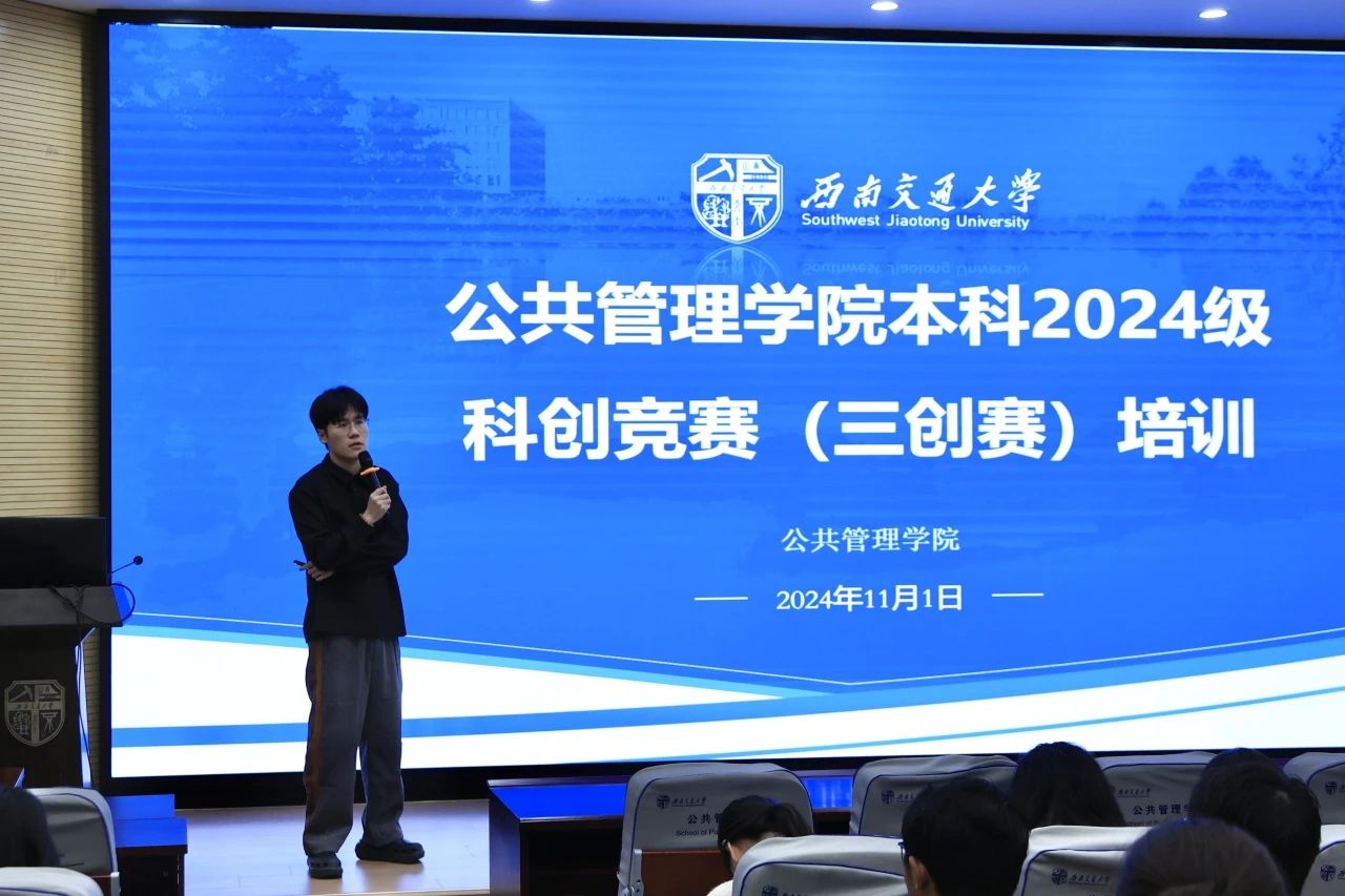 为推动广大学子培养创新思维、拓宽视野,增进其对于科创竞赛的认识,太阳成tyc7111cc于2024年11月1日晚7:30在九里校区0号教学楼0231教室举行太阳成tyc7111cc本科2024级科创竞赛(三创赛)培训会。此次培训会邀请科创竞赛专项工作负责老师王大海老师作为主讲老师。