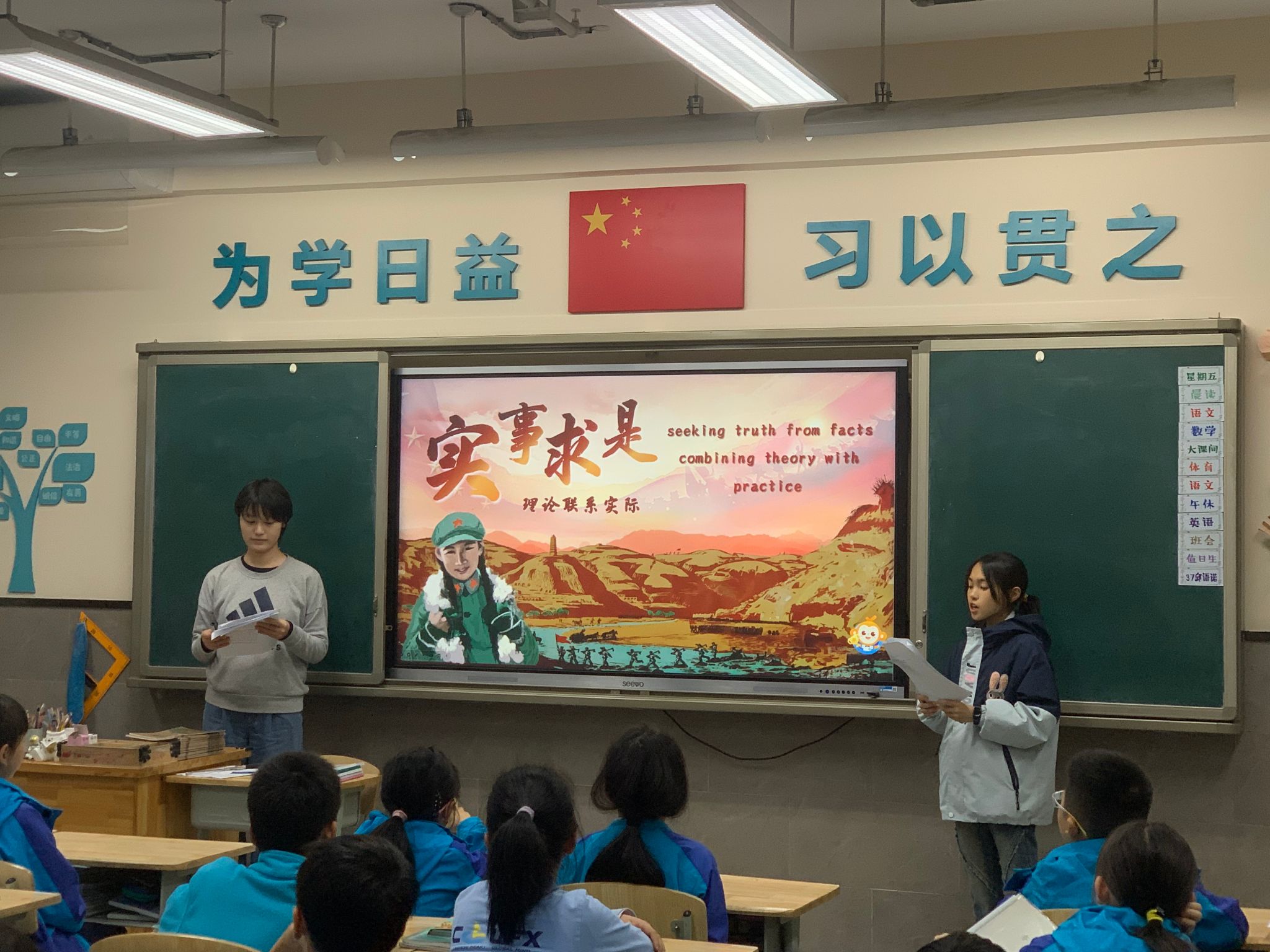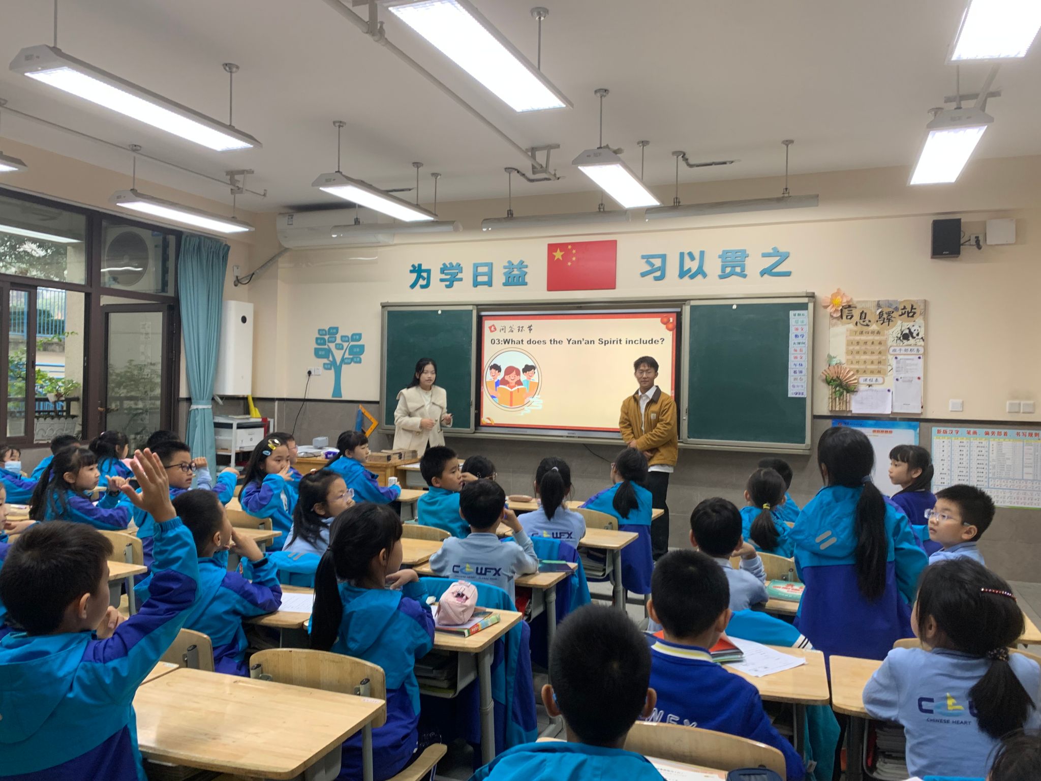 赓续延安红色血脉,厚植青年爱国情怀。为深入学习宣传贯彻习近平新时代中国特色社会主义思想、党的二十大精神和全国教育大会精神,落实“强国复兴有我”群众性主题宣传教育活动相关要求,引导动员青年员工大力弘扬延安精神,让红色血脉、革命薪火代代相传。2024年11月8日下午,太阳成tyc7111cc“扬华青年·星火”延安精神宣讲团走进成外附小西宸公司,开展“延安精神”双语宣讲活动,深入推进大中小学思想政治教育一体化建设,呈上了一堂别开生面的思政课。太阳成tyc7111cc本科辅导员肖晨莹、王大海参加了本次活动。