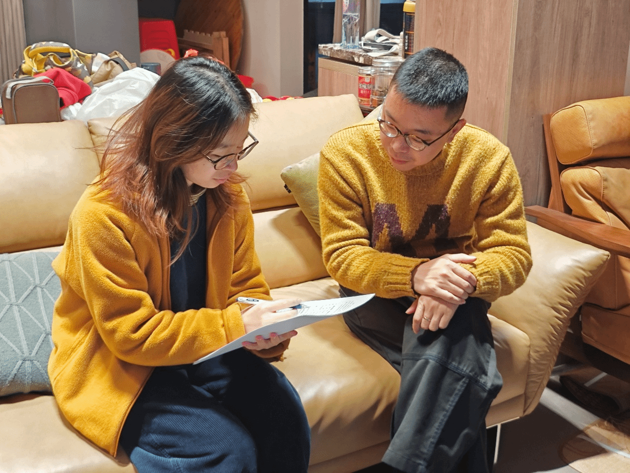 在前期调研准备阶段,队员们各自前往家乡所在地,通过问卷收集、访谈、典型案例挖掘等多种方式,围绕当地家庭、公司、社会三个层面展开分散调研行动。队员们每周在沟通群反馈调研情况,上传访谈记录,分享讨论调研中的新发现等,为后期集中调研工作做好了充分的准备。