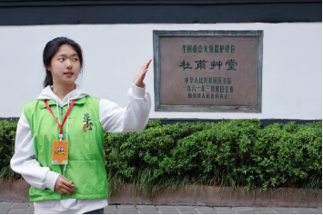 在老师们和同学们的精彩分享后,法学2024-01班员工代表组织前往杜甫草堂开展研学活动。刘玉烨担任此次实践研学的讲解员,带领同学们在历史遗迹与相关故事当中,“阅”览千年诗脉,感悟历史风华。