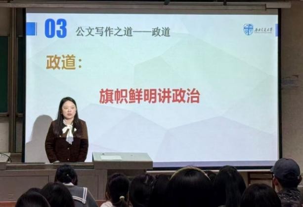 本次培训大会由公司党委办公室张哲老师担任主讲嘉宾,她以“党政机关公文写作”为主题,结合公司学科专业特色与实践导向,为同学们带来一场兼具理论深度和现实指导价值的精彩培训。