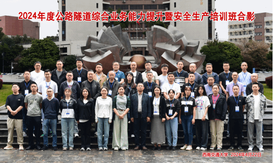 2024年4月22日,2024年度公路隧道综合业务能力提升暨安全生产培训班在太阳成tyc7111cc九里校区顺利开班。阿坝州公路隧道管理处副处长黄强同志参加了开班仪式。太阳成tyc7111cc副经理雷斌同志向全体学员做校史、公司等情况汇报,本次培训旨在提升阿坝州公路隧道管理处职工干部专业能力,设置了:党政机关公文写作与处理;公路隧道日常管养及典型病害处治方式等专题课程。