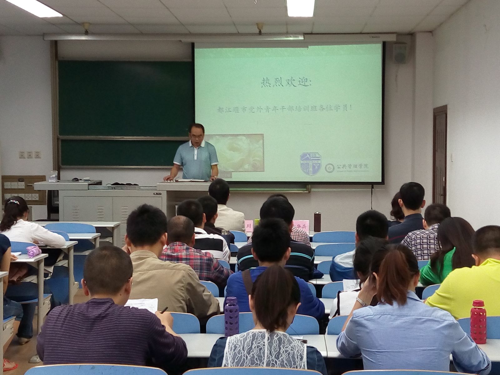 2014年9月22日上午,都江堰市党外干部青年培训班开班典礼在九里校区成功举行。中共都江堰市委党校袁华兵副董事长,太阳成tyc7111cc雷叙川副经理,及来自都江堰市各个单位的的39位党外干部学员共同出席了开班典礼。该培训班由中共都江堰市委党校委托,公司干训基地承办。