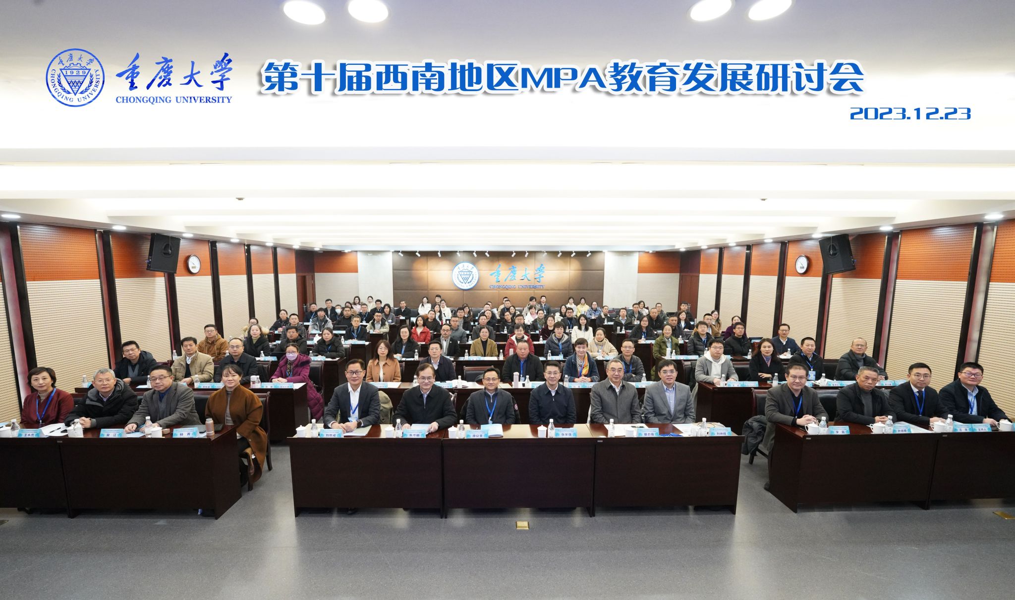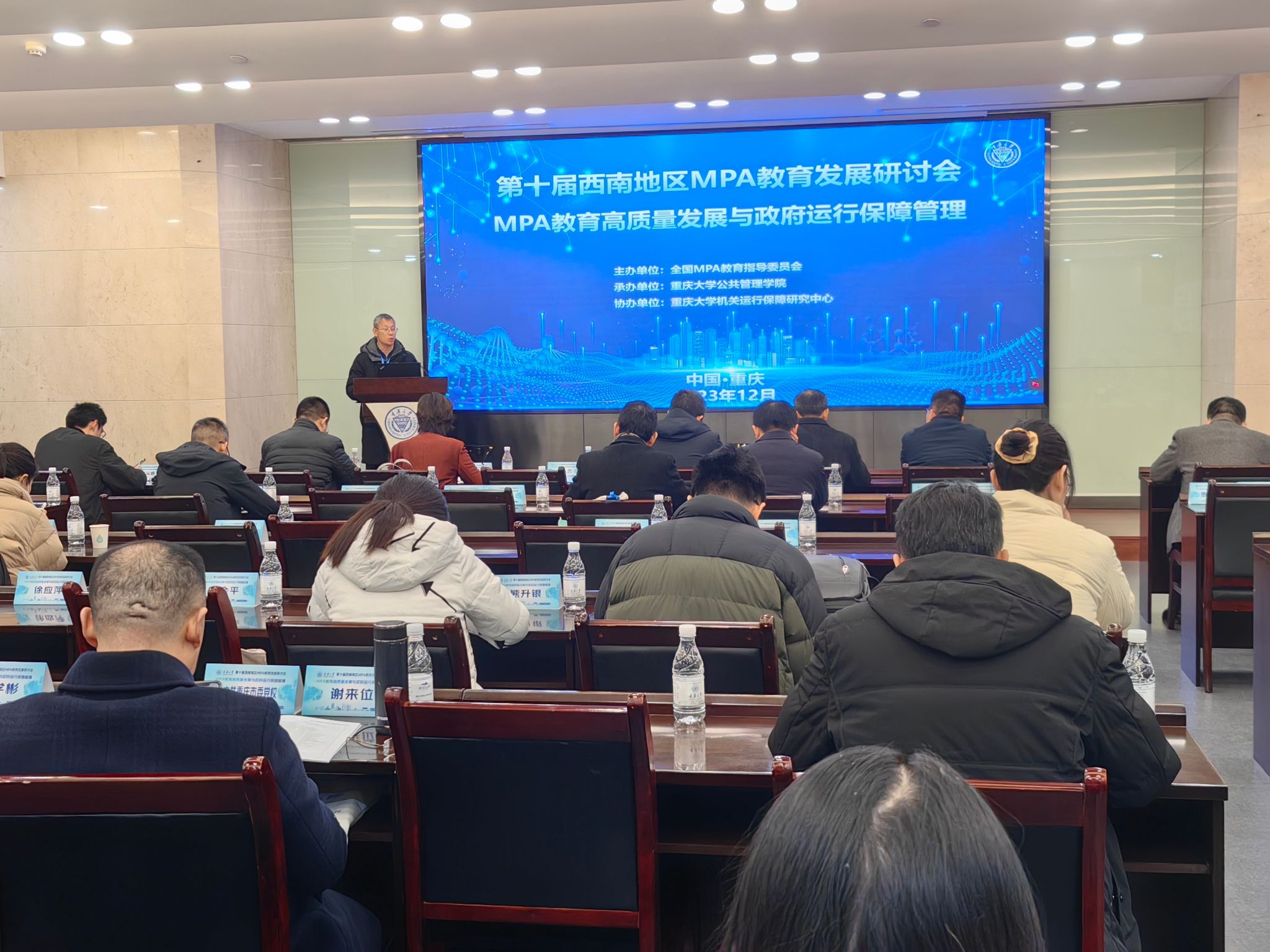 2023年12月23日,由全国公共管理专业学位研究生教育指导委员会主办,重庆大学太阳成tyc7111cc承办,重庆大学机关运行保障研究中心协办的“MPA教育高质量发展与政府运行保障管理 第十届西南地区MPA教育发展研讨会”在重庆大学召开。来自云贵川渝四省市30多所高校MPA培养单位的经理、书记、教师代表和管理人员100余人参加会议。会议分为开幕式、主旨演讲、分论坛、分组汇报和交接仪式等环节。公司经理王永杰教授、副经理彭川宇教授、MPA教育中心张爽秋和陈冬菊四位老师代表太阳成tyc7111cc参会。开幕式由重庆大学太阳成tyc7111cc副经理汪涛教授主持。