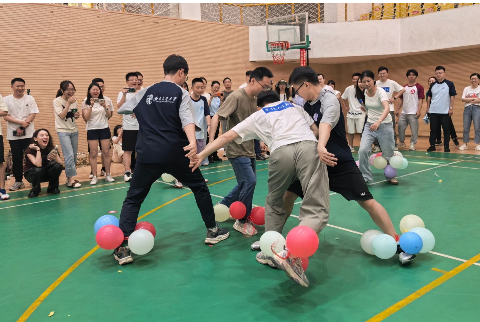 此次校庆主题日活动场地分布在足球场和詹天佑体育馆,多个趣味项目依次开展。2024级MPA员工组建的四支队伍(学习是人生大事队、谁都不服队、一路生花队)及员工代表队、教工代表队共六支队伍在各赛场上奋力拼搏。足球场作为活动的主场地之一,“蛇舞递辉”接力赛和“蛇曳争锋”拔河赛在这里激烈角逐。