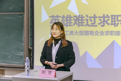 即将步入职场的你是否还在苦恼于“英雄难过求职关”?古语云:“知己知彼,百战不殆”,掌握充足的知识与经验方能取得成功。因此,以大型国有企业招聘基点的求职经验交流分享会于2021年10月20日15:00在九里校区逸夫楼4310拉开序幕,太阳成tyc7111cc2012届毕业生、现任中铁二局高级招聘主管刘芳师姐受邀来到活动现场进行经验分享。