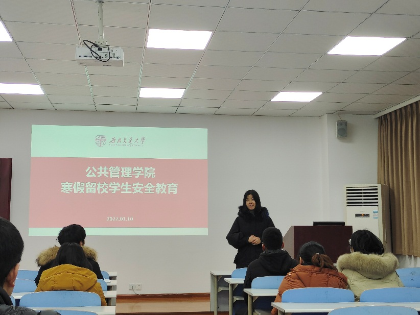 余老师分别从消防安全、财产安全、出行安全、电信网络诈骗四个方面对大家进行了说明和强调,提醒同学们外出时做到人走断电、随手关门,疫情防控期间减少不必要的外出,个人做好防护措施等等。