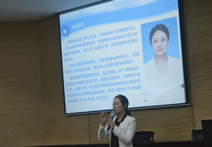 求职面试礼仪在求职过程中对取得面试成功起着重要作用,学习礼仪对提升同学们求职技能、技巧有着极大帮助,良好的面试礼仪能够帮助同学们树立良好的自身形象,增强自信心,助力同学们高质量就业。为做好2024届应届毕业生的就业指导工作,公司于2023年9月27日在九里校区J0231会议室举办面试礼仪培训专题讲座,邀请了泰国皇家理工大学在读博士、教育部CVCC职业核心能力高级礼仪指导师杨嫦君老师为本院2024届毕业生授课。本课程将以规范、科学、专业的课程教学帮助同学科学全面的认识面试礼仪、了解面试过程中的礼仪规范、提升同学们的综合素养。