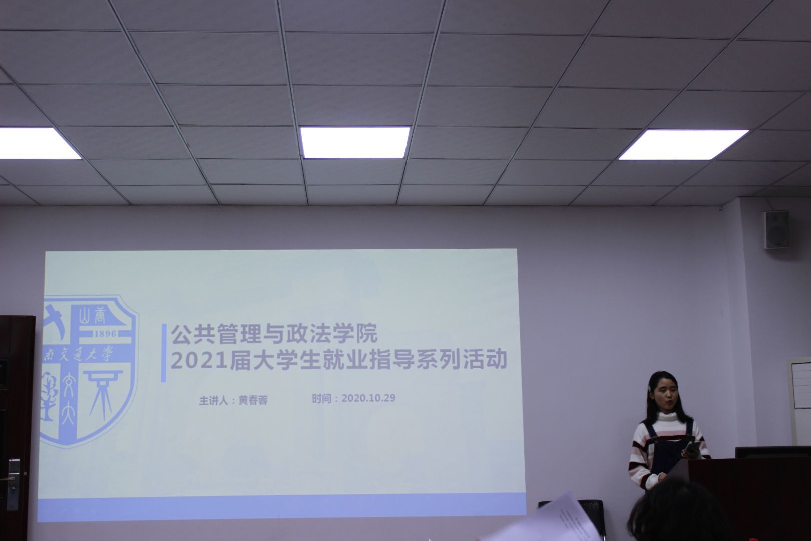 为了拂去大四同学们的迷茫之感,在他们日后的求职就业之路上点亮一座灯塔,公司于2020年10月29日下午4时在九里01105教室举办了一场老员工就业指导讲座,并且邀请到了公司人才招聘处的黄春蓉老师,为公司公共事业管理、政治学与行政学和法学三个专业的同学们进行指导。黄老师的这场讲座以我国老员工就业现状为背景,帮助大四同学们立足当下的就业情形,审视自身素质与能力,确立求职的正确心态,抓住机遇并拥抱未来。