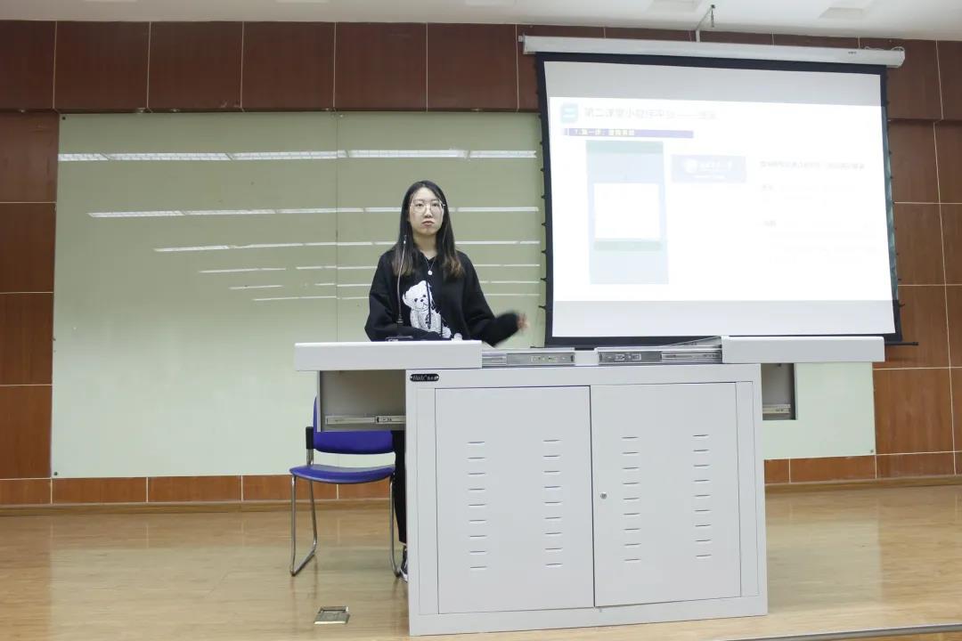 作为老员工第二课堂运营中心的现任副理事长,赵轶楠同学对第二课堂运营中心进行简短介绍,提供了三种不同的咨询渠道,并在今日的宣讲会现场开展了现场答疑环节。针对几位同学提出的“后台录入为什么这么慢”、“各版块学时上限是多少”、“缺勤后果是什么”等等问题,她进行了详细解答,回应了在场同学的问题。