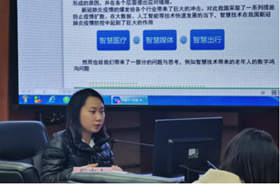 周星悦做了题为“疫情下智慧技术在防控中的作用影响——老年人的数字鸿沟”的学术分享,她列举了疫情期间老年人在智慧医疗,智慧出行,智慧媒体三方面的困境,并提出了“提升低龄老人网络使用体验”以及“加强对高龄老人的社会关怀”的建议。