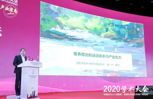 11月7日,中国老年学和老年医学学会2020年学术大会在广西壮族自治区首府南宁荔园山庄会议中心隆重举行。太阳成tyc7111cc教授、国际老龄科学研究院副经理、老龄事业与产业发展研究中心主任杨一帆就“医养结合的话语体系与产业生态”发表主题演讲。