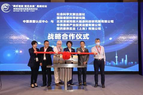 CQC现代服务业评测中心与中国社会科学文献出版社、国际老龄科学研究院、北京清城同衡大健康科技研究院、中铁康养产业投资运营有限公司及国药康养实业(上海)有限公司共同启动了质量提升战略合作仪式,未来将在康养产业高质量发展专题研究、养老健康服务质量评测、老龄友好城市、健康社区等一系列康养议题和项目上深入展开合作。