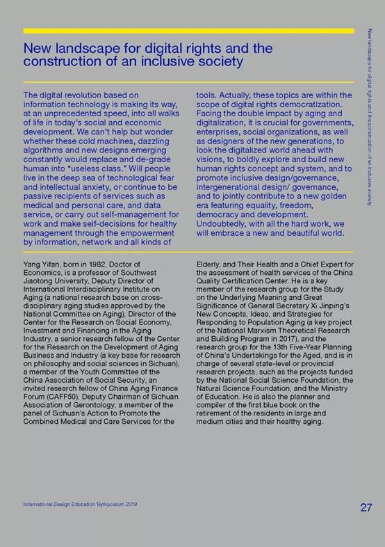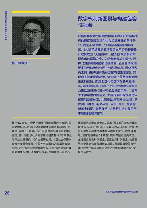 2019年10月28日,国际老龄科学研究院副经理、老龄事业与产业发展研究中心主任杨一帆教授在“2019年设计公司产品国际学术研讨会”上发表题为《数字权利新图景与构建包容性社会》的主旨演讲。