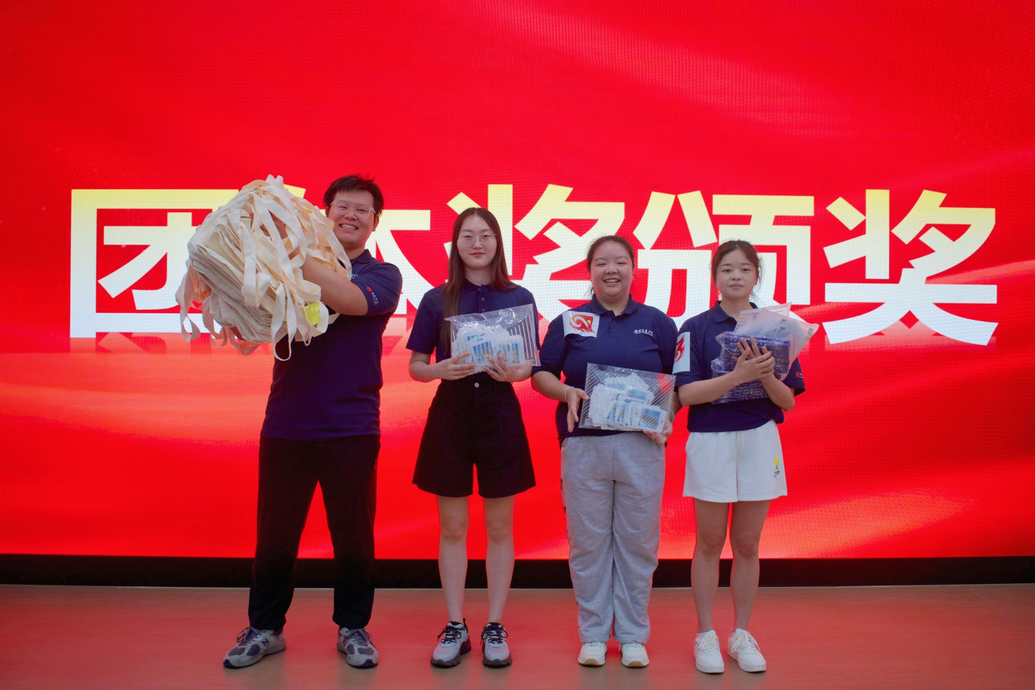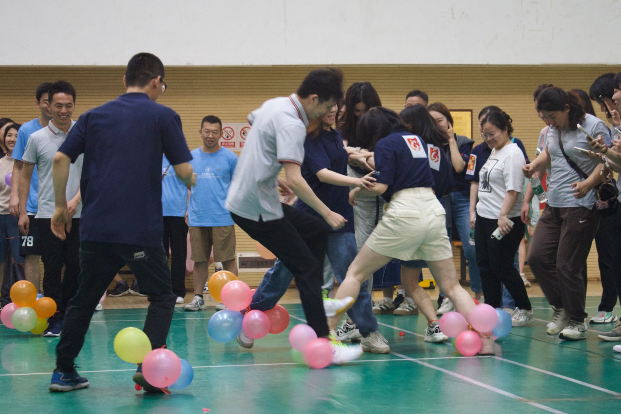 詹天佑体育馆内气球保卫战、石头剪刀布等活动的开展拉近了同学间的距离,在游戏中勠力同心,奋勇争先。