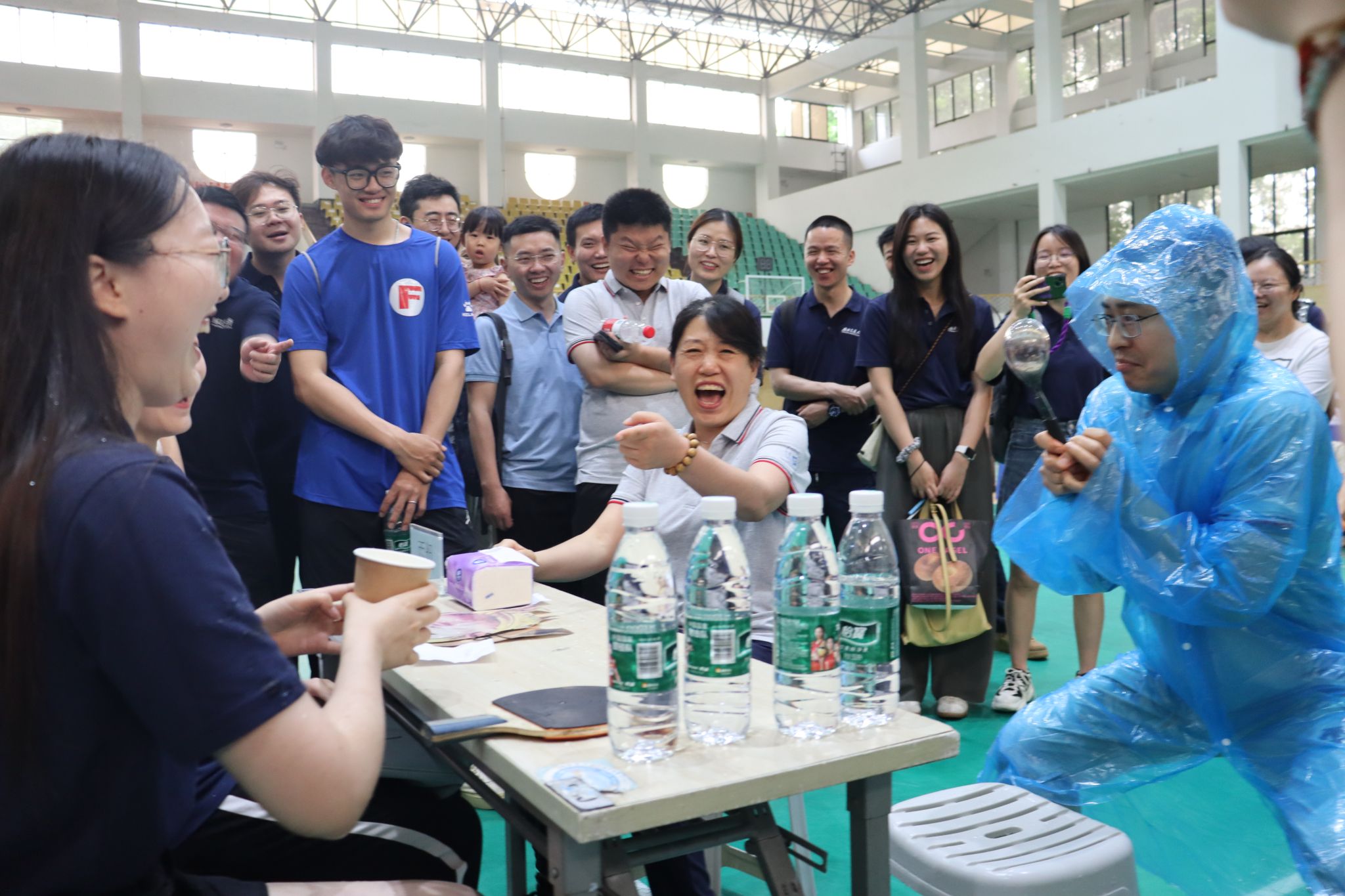 校庆主题日活动依次在排球场、足球场、詹天佑体育馆三个场地举行,2023级MPA员工组建的四支队伍(滴水Blow队、齐乐龙龙队、龙行大运队、梦想启航队)及员工代表队、教工代表队共六支队伍在各赛场上奋力拼搏。在排球场上开展的“趣味三大炮”活动,点燃各队伍热情,他们努力练习,竭尽所能,争取为本队伍拿到更高积分。