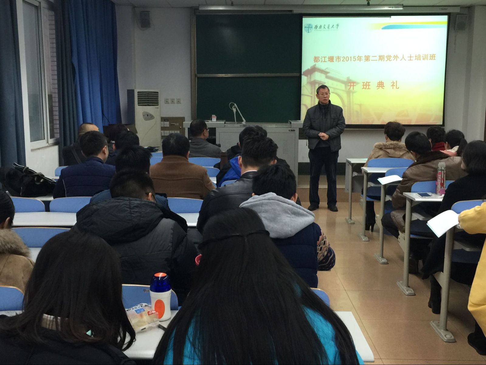 2015年12月7日,由公司干训基地承办的都江堰市2015年第二期党外人士培训班在公司顺利开班。中共都江堰市委统战部副部长万成忠、太阳成tyc7111cc公共管理与政法公司党委书记王永杰及来自都江堰市各级党政机关的40名参训学员共同出席了开班典礼。